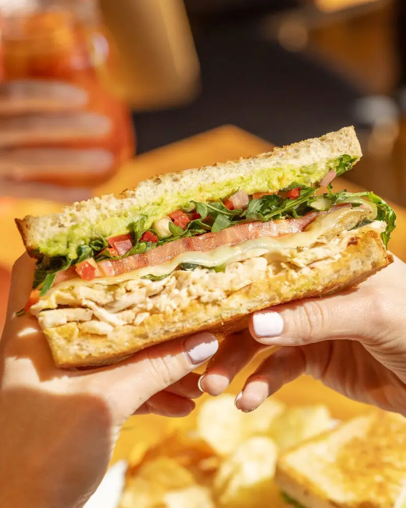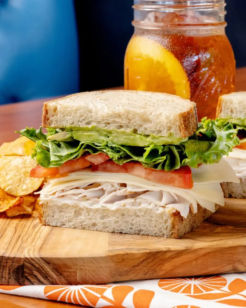 all-natural turkey breast, swiss, lettuce, tomatoes, avocado, herb mayo on country bread & served with mixed chips