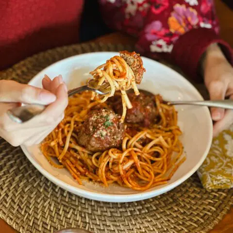 fresh pasta layered with a beef & pork ragu, mozzarella, ricotta & marinara topped with parmesan & parsley & served with garlic bread